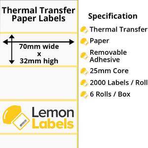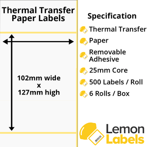 LL1060-21 - 102 x 76mm Thermal Transfer Paper Labels With Permanent Adhesive on 25mm Cores